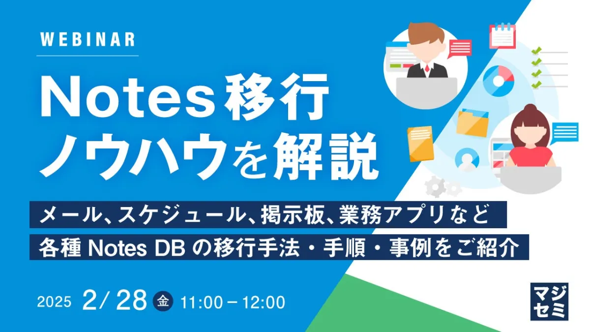 本ウェビナーでは、Notes移行における様々な課題にどのように対処すべきかに焦点を当て、そのノウハウを共有します。移行プロセスにおけるスムーズな確認作業を支援するためのツールの活用や、データベースの現状把握に関する具体的なステップを事例とともに紹介します。参加者は、実際の経験をもとにした具体的なアドバイスや取り組み方のヒントを得ることができます。
