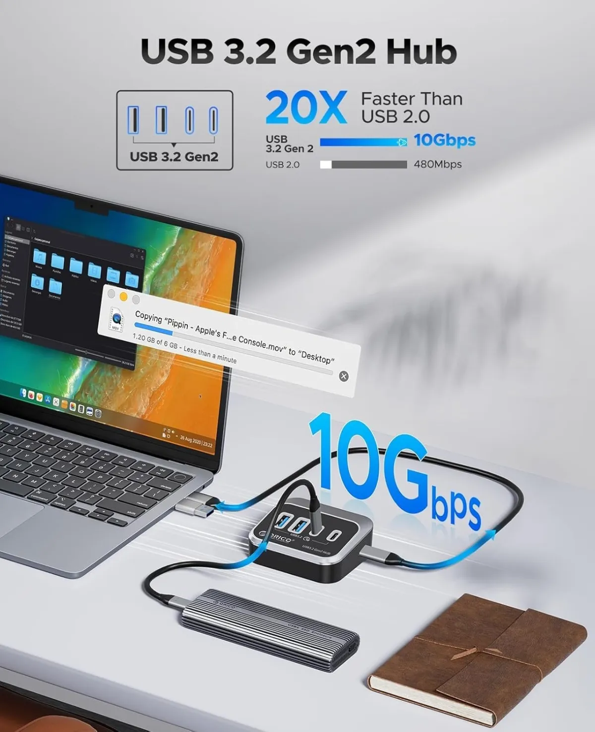ORICOのUSBハブは、最新のUSB 3.2規格に対応しており、データのやり取りがこれまで以上にスムーズです。特に、大きなファイルを扱う際にはその違いを実感できることでしょう。デジタルデータの移動が多い方にとって、高速転送は生産性を大いに向上させる要素となります。