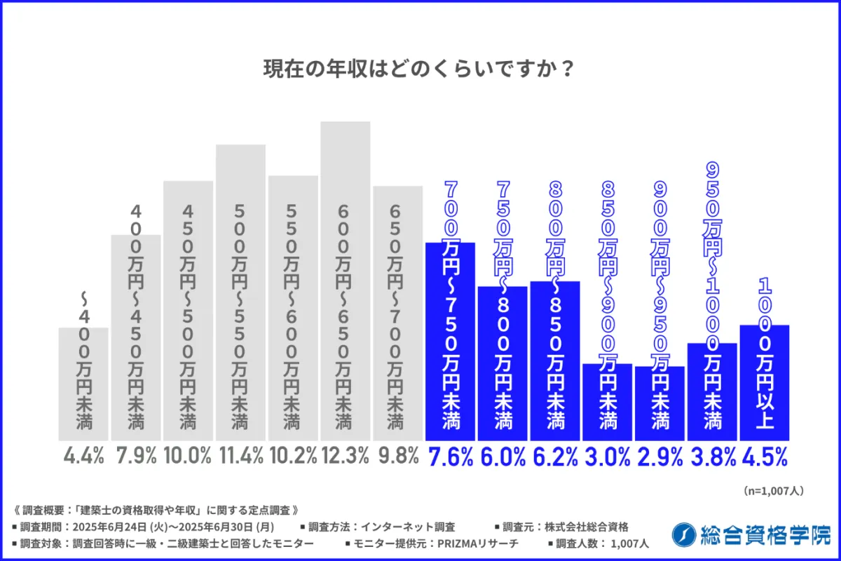 株式会社総合資格が実施したこの調査は、全国の一級・二級建築士を対象に行われました。調査期間は2025年6月24日から30日まで、1,007人の建築士から回答を得ています。結果では、多くの建築士が資格を取得することで年収や職務の満足度が向上したことが示されました。