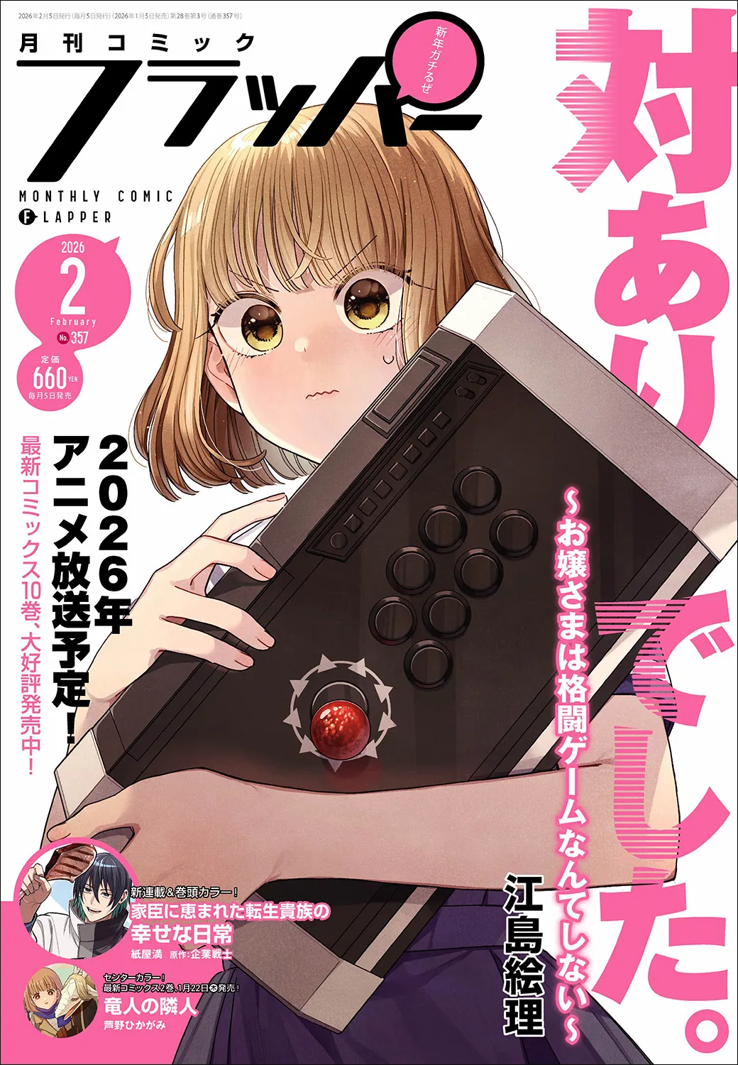 2026年1月5日(月)、待望の『月刊コミックフラッパー2026年2月号』が発売されます。今月の表紙を飾るのは、話題の作品『対ありでした。 ~お嬢さまは格闘ゲームなんてしない~』。黒美女子学院格闘ゲーム部が舞台となっており、新入部員が加わることで活気づいていく様子が描かれています。主人公の綾は謎の女性との特訓に励んでおり、彼女の成長が楽しみなところです。また、ゲーム部に訪れる星識(せしる)の目的も気になるポイントです。