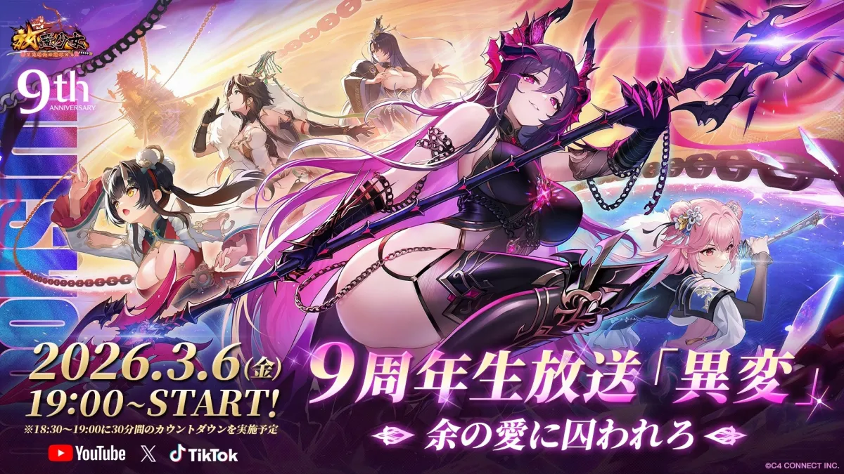 C4 Connect株式会社が提供する美少女RPG『放置少女〜百花繚乱の萌姫たち〜』が、2026年3月6日にサービス開始から9周年を迎えます。その記念として、特別な生放送が配信されることが発表されました。今回は、豪華ゲストの出演や、珍しい特典を含む内容をご紹介します。