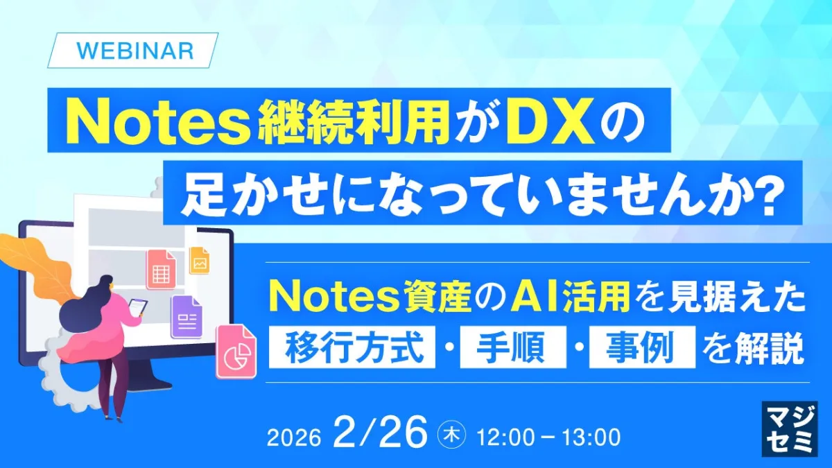 このウェビナーでは、Notes移行の実績を基にした具体的な移行手順や移行ツールの使い方が紹介されます。実際の導入事例を交えながら、各種のデータベース特性に応じた用途別の移行方法と考え方を明らかにします。また、移行手続きにおけるリアルな実践的アプローチをシェアし、アプリ移行だけでなくデータ移行に関する知識も提供します。さらに、ウェビナー終了後には、移行やデータ抽出に関するツールのデモや個別相談も行われるため、具体的なアクションプランを持ち帰ることが可能です。