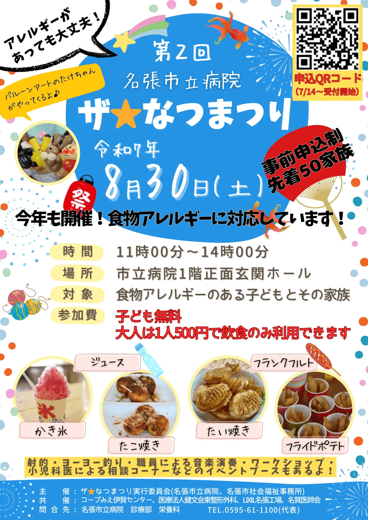 三重県名張市にある名張市立病院で、アレルギーを気にせず楽しめるイベント「ザ☆なつまつり」が今年も開催されます。この夏祭りは、食物アレルギーのある子どもたちとその家族を対象にしたもので、病院職員の熱意が詰まった企画です。