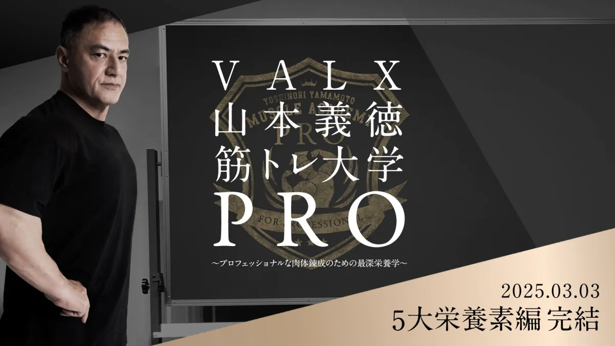 フィットネスブランド「VALX」を展開する株式会社レバレッジが、トレーニング界のレジェンドである山本義徳氏のプロ向け動画シリーズ「筋トレ大学PRO」を完結しました。2025年3月3日(月) 21時から、VALXメンバーズストアの会員を対象に、シリーズの最終回である「#30 疲労回復のための栄養戦略」の映像が配信されます。