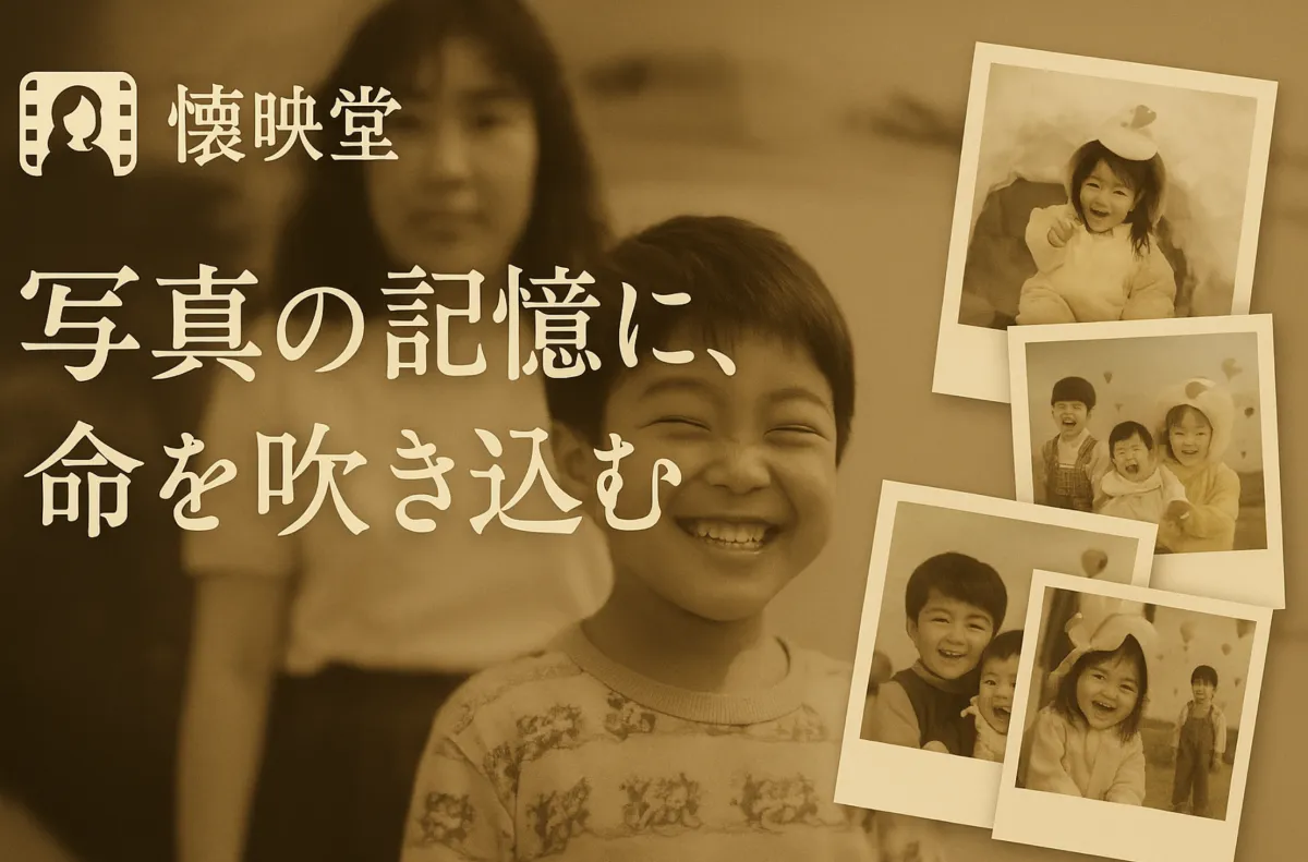 近年、少子高齢化の影響で私たちの家族の在り方や思い出の残し方が大きく変わりつつあります。大切な家族の顔を忘れずにいるために、そして「亡くなった人にもう一度会いたい」という願いは、世代を超えて共通する思いです。しかし、昔の紙の写真は時を重ねるごとに色あせ、手に取ることも難しくなってしまいます。そこで、AI技術を駆使してその願いを実現する新しいサービス、「懐映堂」が登場しました。