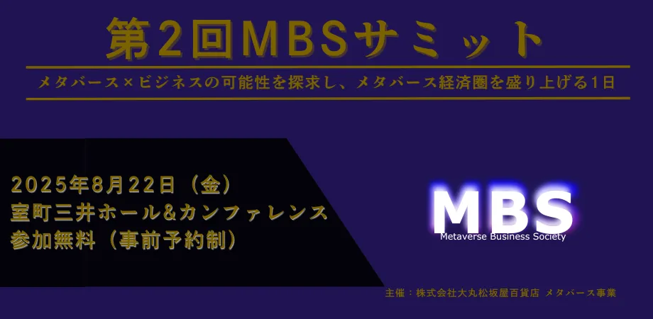 2025年8月22日、大丸松坂屋百貨店が主催する第2回Metaverse Business Society(MBS)サミットが東京都のCOREDO室町テラスで行われます。このイベントでは、メタバースビジネスの最前線で活躍する専門家たちが集い、メタバースの可能性や実践事例について語ります。