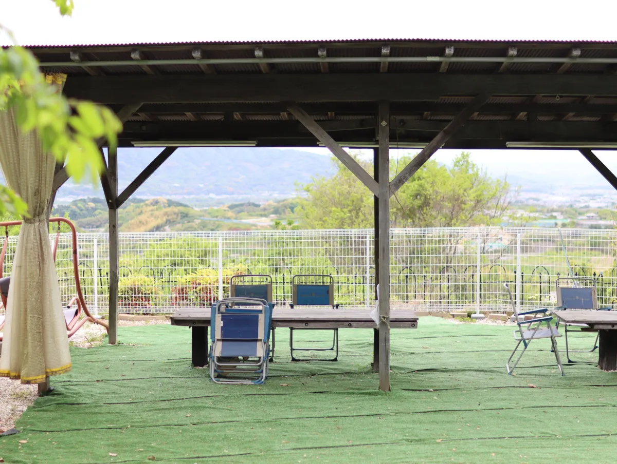 スカイサイトは観音山フルーツガーデンから徒歩5分の場所にあります。地形を活かし、360度の眺めを楽しめる丘の上に設けられています。紀の川を一望しながら、専用のブランコやテントスペースで飼い主もリラックスできます。