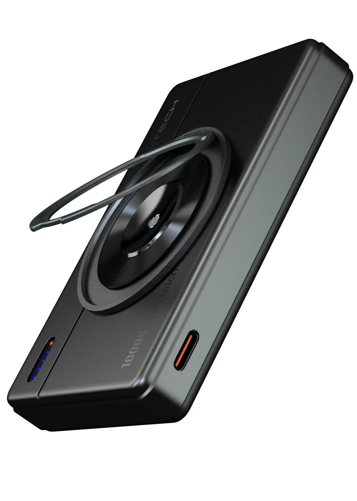 「MagOn Watch 10000」のデザインも注目に値します。360°回転できるスタンドが付いており、動画視聴やオンラインミーティングの際にとても便利です。このスタンドは、スマホリングとしても使えるので、片手での操作も安定して行えます。