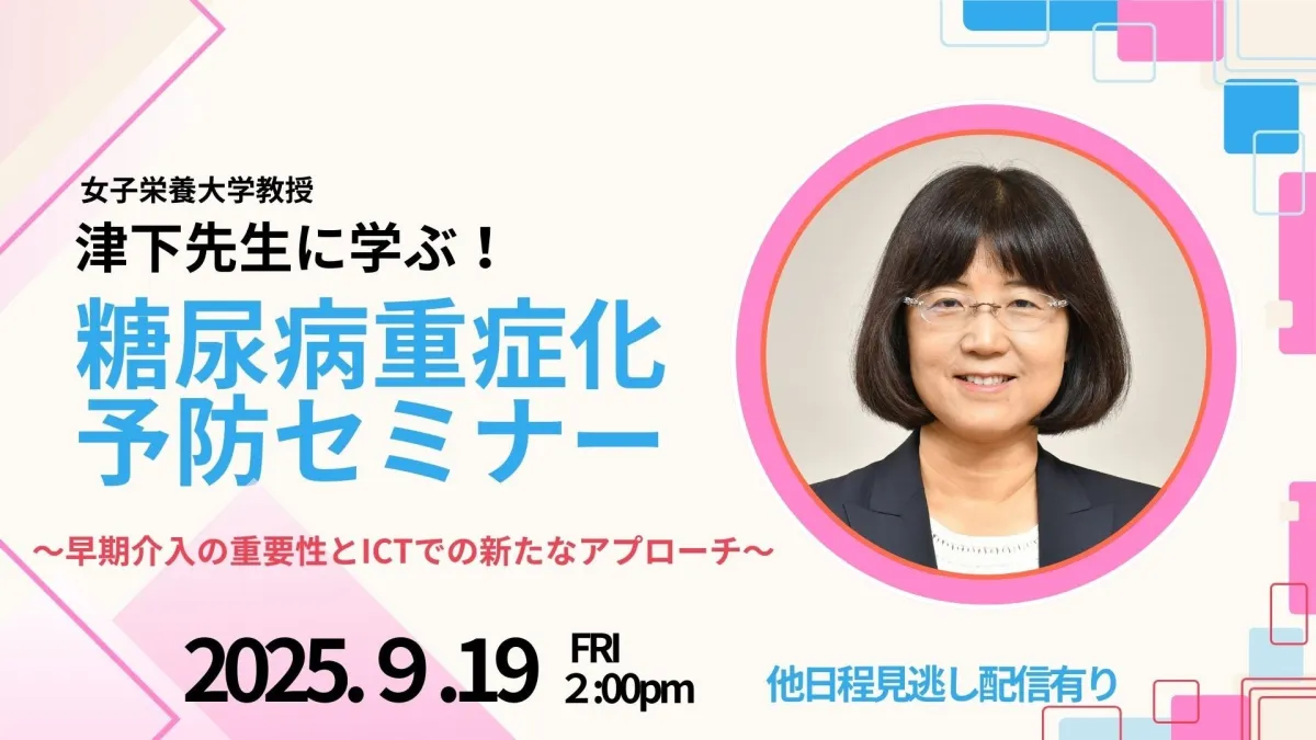 セミナーでは、女子栄養大学の特任教授である津下一代氏が講師として登壇します。津下教授は名古屋大学医学部を卒業後、国立名古屋病院や愛知県総合保健センターなどで糖尿病や肥満症の診療に従事し、重症化予防に関するプログラムの策定にも携わってきました。彼の経験豊かなバックグラウンドをもとに、