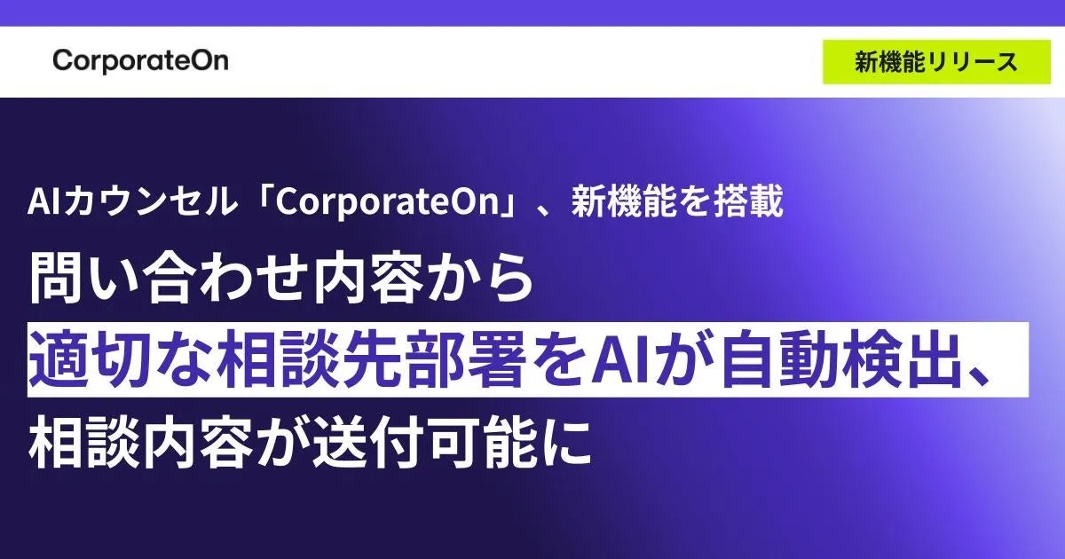 株式会社LegalOn Technologiesが展開するAIカウンセル「CorporateOn」は、企業内の効率的なコミュニケーションを支援するため、最新の機能を搭載しました。この機能は、企業のコーポレート部門における問い合わせ管理の煩雑さを解消することを目的としています。