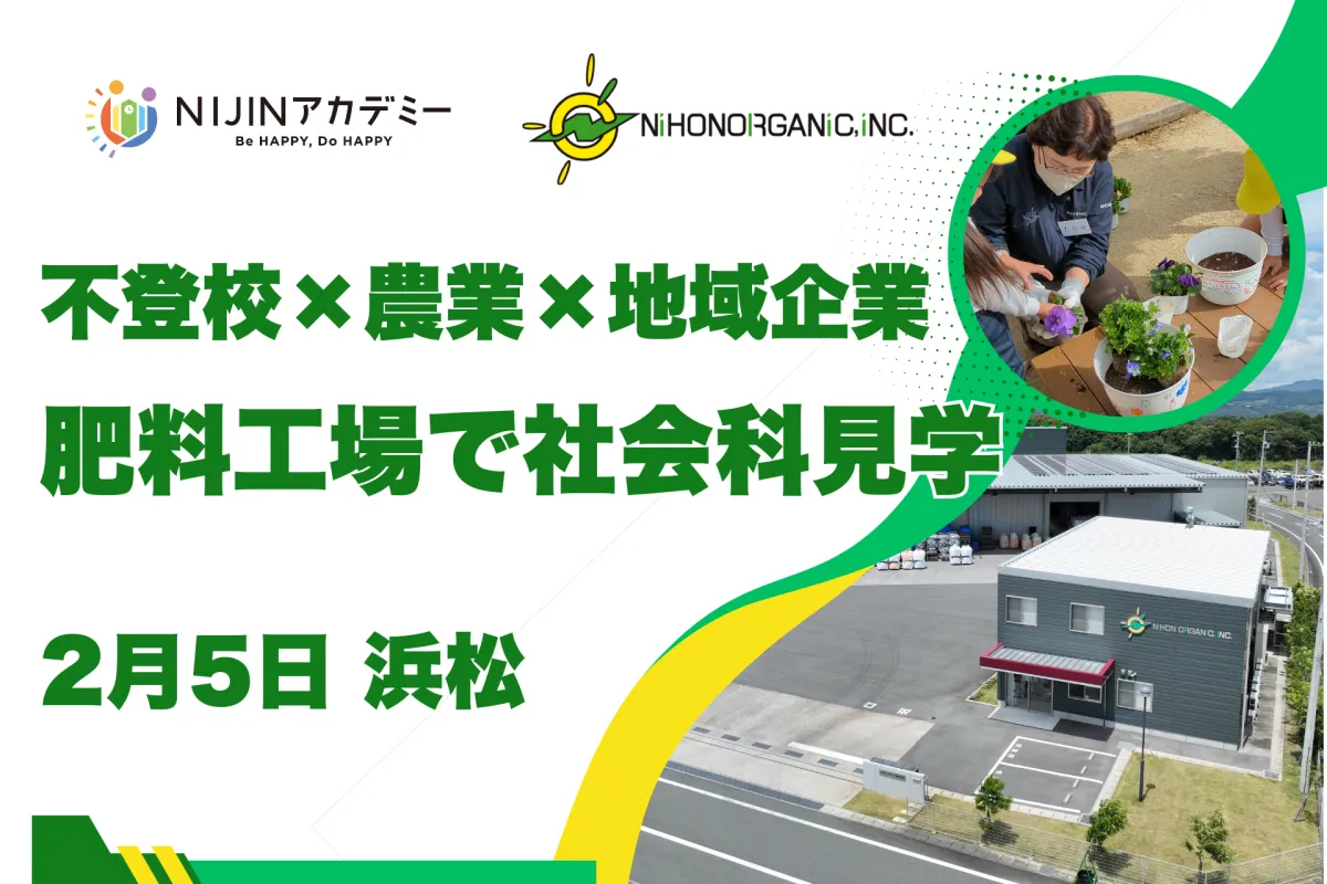 2026年2月5日、静岡県浜松市にて、株式会社NIJINが運営する「NIJINアカデミー」が、不登校の小中学生を対象とした社会科見学を開催します。このイベントは、日本オーガニック株式会社の協力のもと、肥料工場での体験型学習を提供するものです。