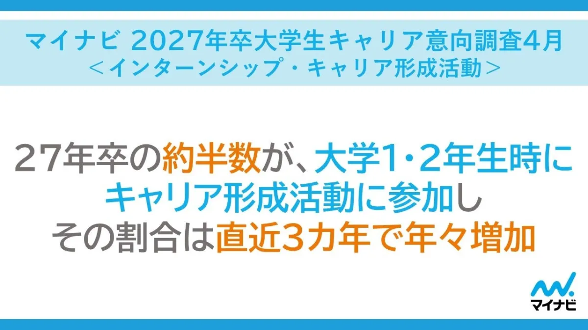 株式会社マイナビが、2027年3月卒業予定の全国の大学生・大学院生を対象に実施したキャリア意向調査の結果を公表しました。この調査は、大学1・2年生のキャリア形成活動の参加状況や初任給についての意識を探るもので、特に注目すべき点がいくつかあります。
