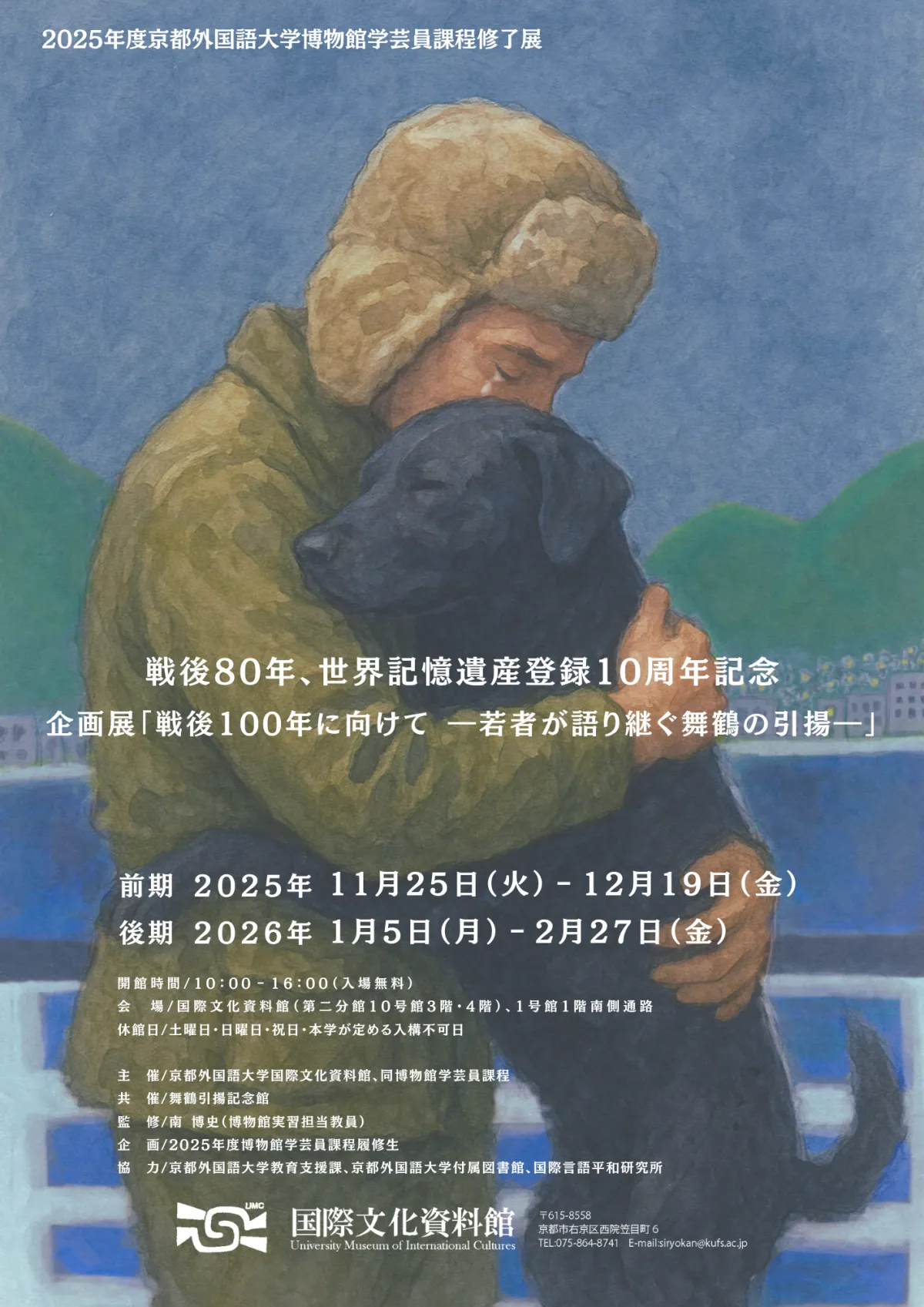 京都外国語大学(京都市右京区 学長:小野隆啓)は、2025年度に博物館学芸員課程の学生が手掛ける特別企画展「戦後100年に向けて―若者が語り継ぐ舞鶴の引揚―」を開催します。この展覧会は、太平洋戦争の終戦から80年を迎える記念すべき年に、戦後の歴史を次世代に伝える重要な機会となります。