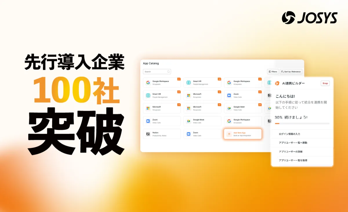 ジョーシス株式会社が提供する自律型SaaS管理プラットフォーム「Josys」が、新機能「AI連携ビルダー」の先行提供を開始し、導入企業数が早くも100社を超えたことを報告しています。この機能は、特にSaaSツールを扱う企業にとって特筆すべきもので、従来の管理ツールが抱えていた連携先の制約をAIを活用して克服します。