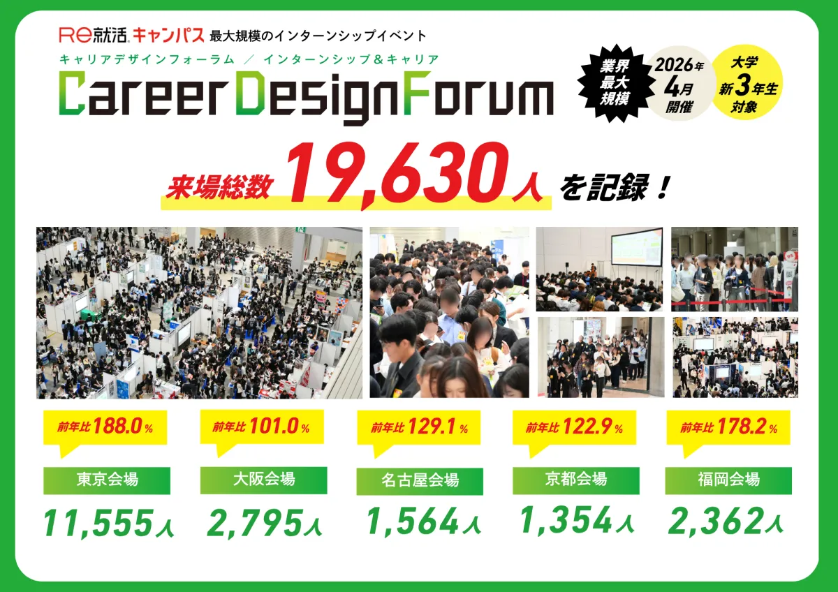 2026年4月、全国で開催された「Career Design Forum」は、19,630人の大学生が参加し、多くの学生にとって貴重なキャリア形成の場となりました。このイベントは、さまざまな企業と直接対話できる貴重な機会を提供し、学生たちのニーズに応えています。