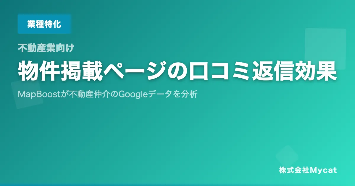 株式会社Mycat(本社:東京都目黒区)が、新たに「MapBoost」というサービスを立ち上げました。このサービスは、Googleの口コミを活用した不動産業界向けの効果分析レポートを提供するものです。これにより、不動産事業者は自社の物件掲載ページの効果を定量的に評価できます。