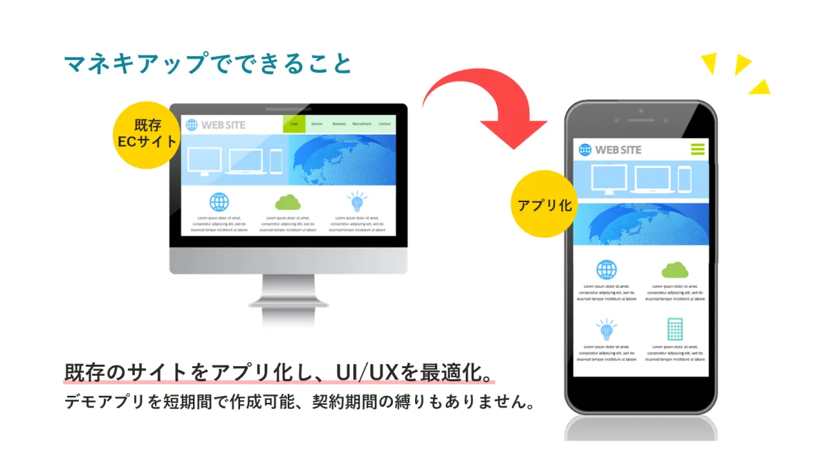 株式会社電通ダイレクトが新たに提供を開始した「マネキアップ」は、Webサイトをアプリ化するための革新的なソリューションです。このサービスは、主にECサイトやブランドサイトを対象にしており、既存のWebサイトを改修することなく、iOSおよびAndroidアプリを短期間で立ち上げることが可能です。特に注目すべきは、成果報酬型であるため、初期費用や固定費用がかからない点です。