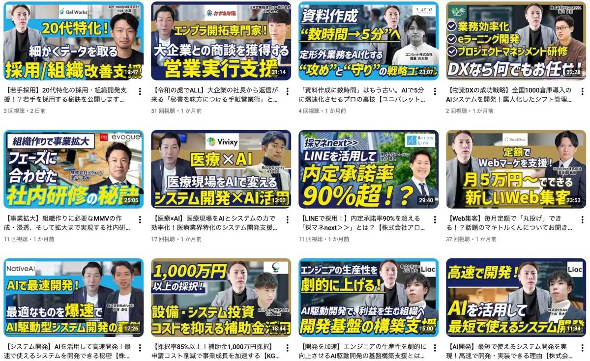 プロベルのインタビュー動画は多くの経営者や事業担当者から高い評価を受け、彼らは「気になる業者を効率的に探せる」「新たなビジネスのヒントが得られる」と口を揃えています。動画によって業者の技術力や人柄をより具体的に把握できるため、出会うべき人材や企業を見つけるための強力な手段となっているのです。