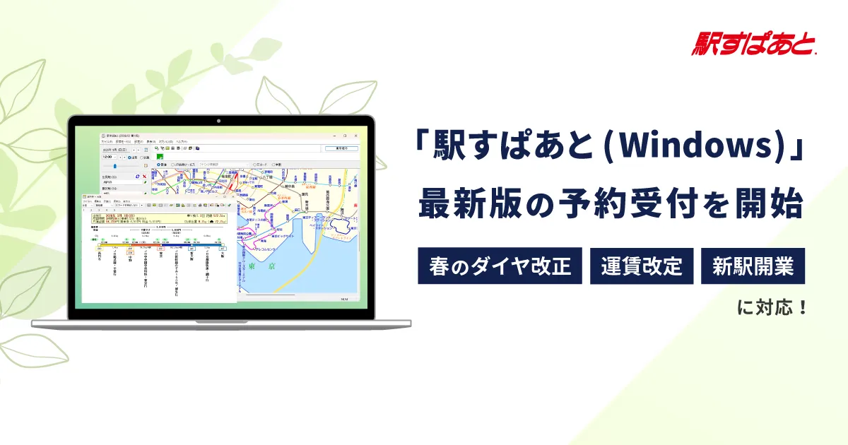 「駅すぱあと」は1994年の初発売以来、30年以上長きにわたり、多くのユーザーに支持されてきました。今回の最新版は、JRグループ及び私鉄各社の春のダイヤ改正や運賃改定にもしっかり対応。特に注目すべきは、3月14日に開業予定のJR西日本の「手柄山平和公園」駅とハピラインふくいの「しきぶ」駅の情報をも含むことです。