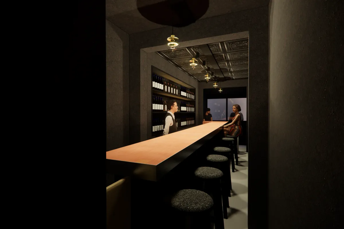 建物の設計は、1階にカクテルバー、2階にカスクバーを配置し、来訪者の気分や目的に応じた異なる体験を備えています。外観は、街に溶け込むような落ち着いたデザインであり、看板を掲げないことで隠れ家のような魅力も醸し出しています。
