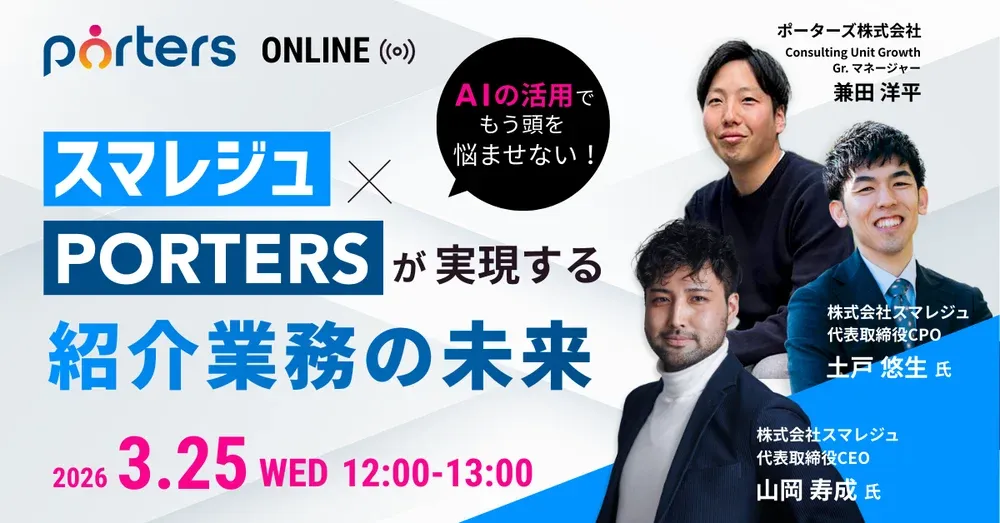人材業界においてAI(人工知能)の活用がますます注目を集めています。しかし、実際に導入したものの成果が出ないという声も多く聞かれます。そんな中、株式会社スマレジュとポーターズ株式会社が共同で、2026年3月25日(水)に無料のオンラインセミナーを開催します。このセミナーでは、人材業界の経営者や事業責任者に向けて、具体的なAI活用方法を紹介します。
