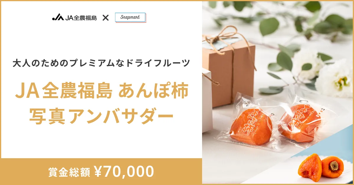 Snapmartは、株式会社CREAVEが運営するプラットフォームで、35万人以上のクリエイターが集い、商品の撮影やSNS発信を行っています。アンバサダー活動では、商品の無料提供を受けて制作した写真や動画はSNSの利用を通じて広がります。あんぽ柿を使った楽しいコンテンツを作成することで、福島の特産品の認知度を高めることが期待されます。