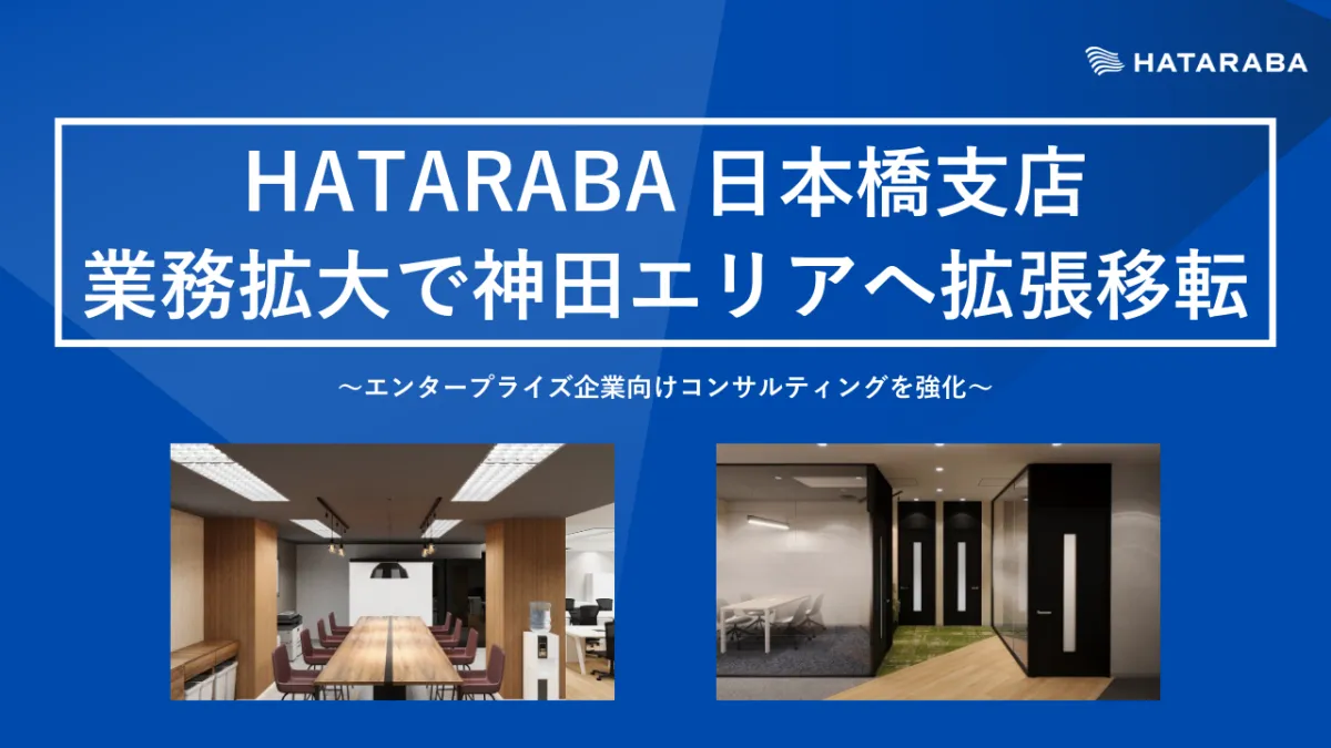 株式会社HATARABAは、2025年12月22日(月)より業務拡大に伴い、日本橋支店を神田エリアへの拡張移転します。この新たなオフィスは、従来の約2倍の規模となり、エンタープライズ企業のためのコンサルティング支援に特化した拠点となります。