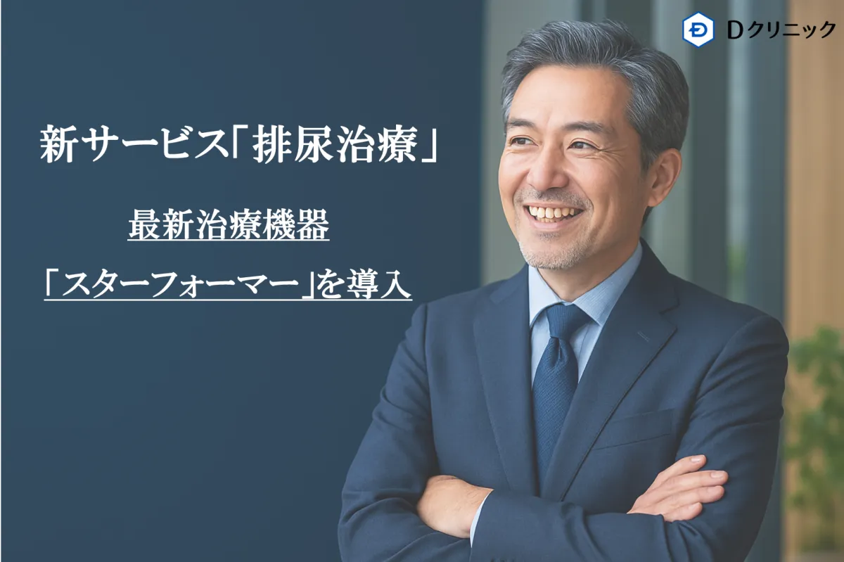 2025年10月1日(水)、Dクリニック東京が新たな治療サービス「排尿治療」を開始します。このサービスは、頻尿や尿漏れ、性機能の低下を抱える男性のためにデザインされたもので、従来の治療法に革新をもたらすものです。
