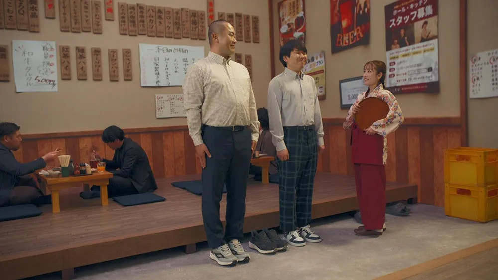 新CMは、大きく二つの篇が用意されています。まずは「こんな場面でスパット!居酒屋」篇。こちらでは、ハナコの3人が居酒屋のお座敷で靴をスマートに履く様子をコミカルに演出しています。友達との楽しい食事のシーンを想定して、自然にスパットシューズを履きこなす様子が印象的です。