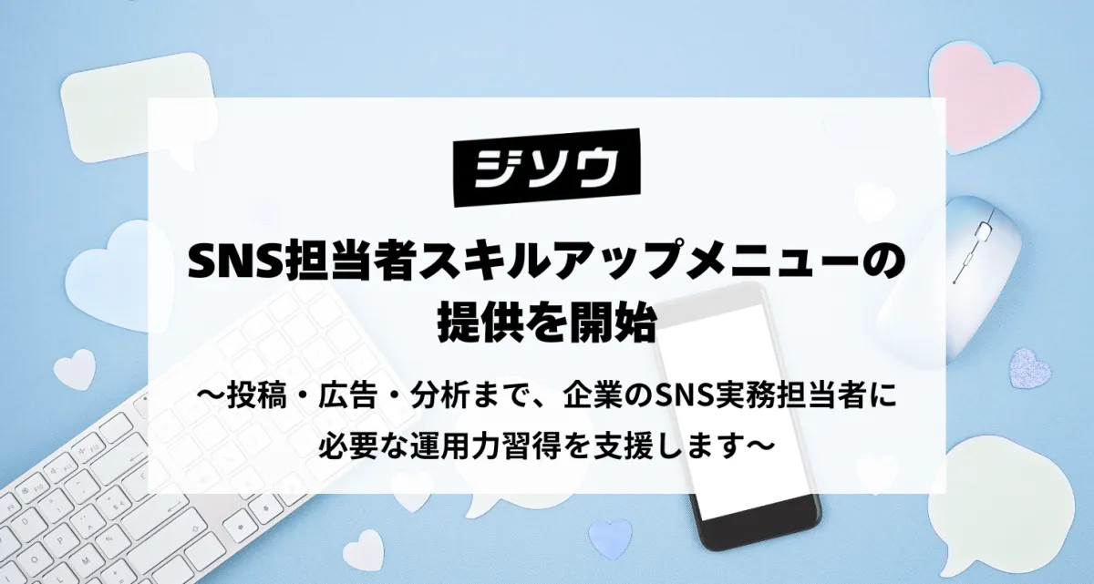 株式会社ジソウは、企業や団体のSNS担当者に向けた「SNS担当者スキルアップメニュー」の提供を開始しました。SNSを効果的に運用するために必要なスキルを磨き、安定した運用体制を構築することを目的としています。
