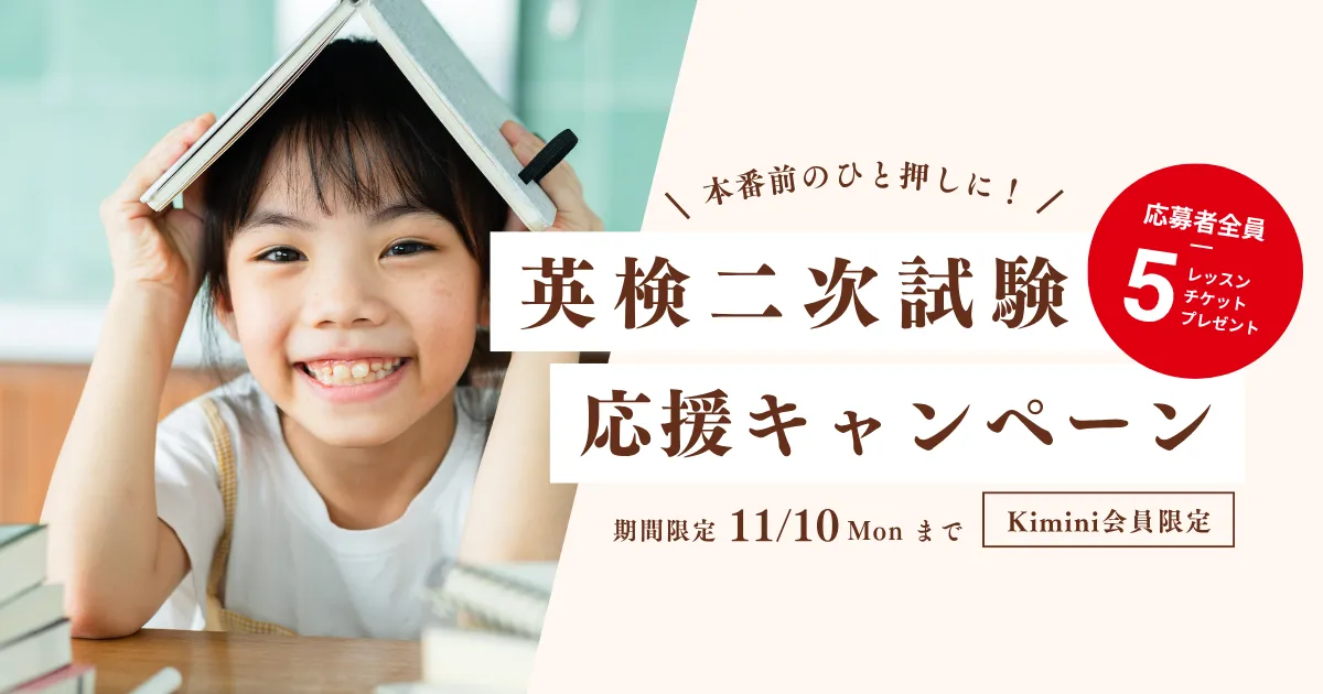 2025年11月に予定されている英検®二次試験を目前に控え、多くの受験生が緊張感を抱えていることでしょう。そんな皆さんをサポートするため、株式会社Glatsが提供するオンライン英会話サービス「Kimini英会話」では、特別なキャンペーンを実施します。2025年10月21日から開始されるこの「英検二次試験対策応援キャンペーン」では、対象条件を満たした全員に5レッスン分のレッスンチケットが無料配布されます。