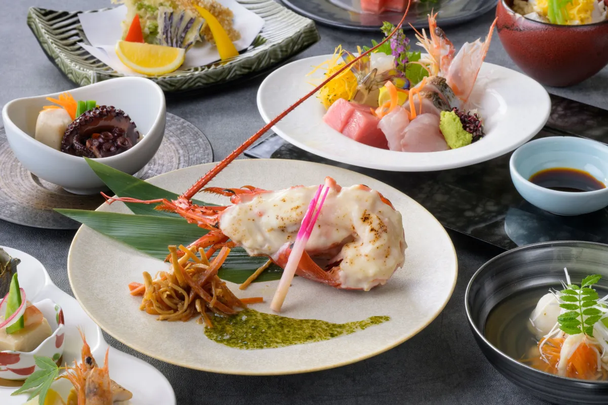 参加者は、伊勢湾の海の幸をふんだんに使った直会ディナーを味わいながら、食と文化の深いつながりを体験できます。提供されるメニューには、前菜、吸物、造り、焼物、蓋物、揚物、食事、デザートなど多彩な料理が用意されています。なお、メニューは変更される可能性がある点もご了承ください。特に伊勢海老を使った料理は、目でも舌でも楽しめる選りすぐりの一品です。