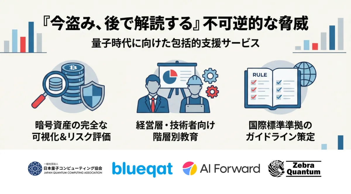 内閣府や内閣サイバーセキュリティセンター(NISC)もこの攻撃に懸念を示しており、早期の対策が必要とされています。このサービスは、日本企業が量子時代に直面するセキュリティ脅威に対処するための包括的なサポートを提供します。