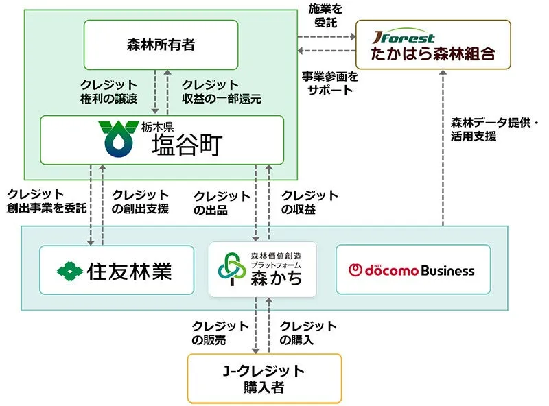 栃木県塩谷町は、10月17日、塩谷町の私有林を対象にJ-クレジットの創出及び販売を行うための連携協定を締結しました。このプロジェクトは、たかはら森林組合や住友林業株式会社、NTTドコモビジネス株式会社と協力して進められ、個人の森林所有者にクレジットの収益を還元することを目指しています。町内に存在する約2,000ヘクタールの私有林の所有者に向けた意向調査を行い、2027年までにJ-クレジットの販売を計画しています。