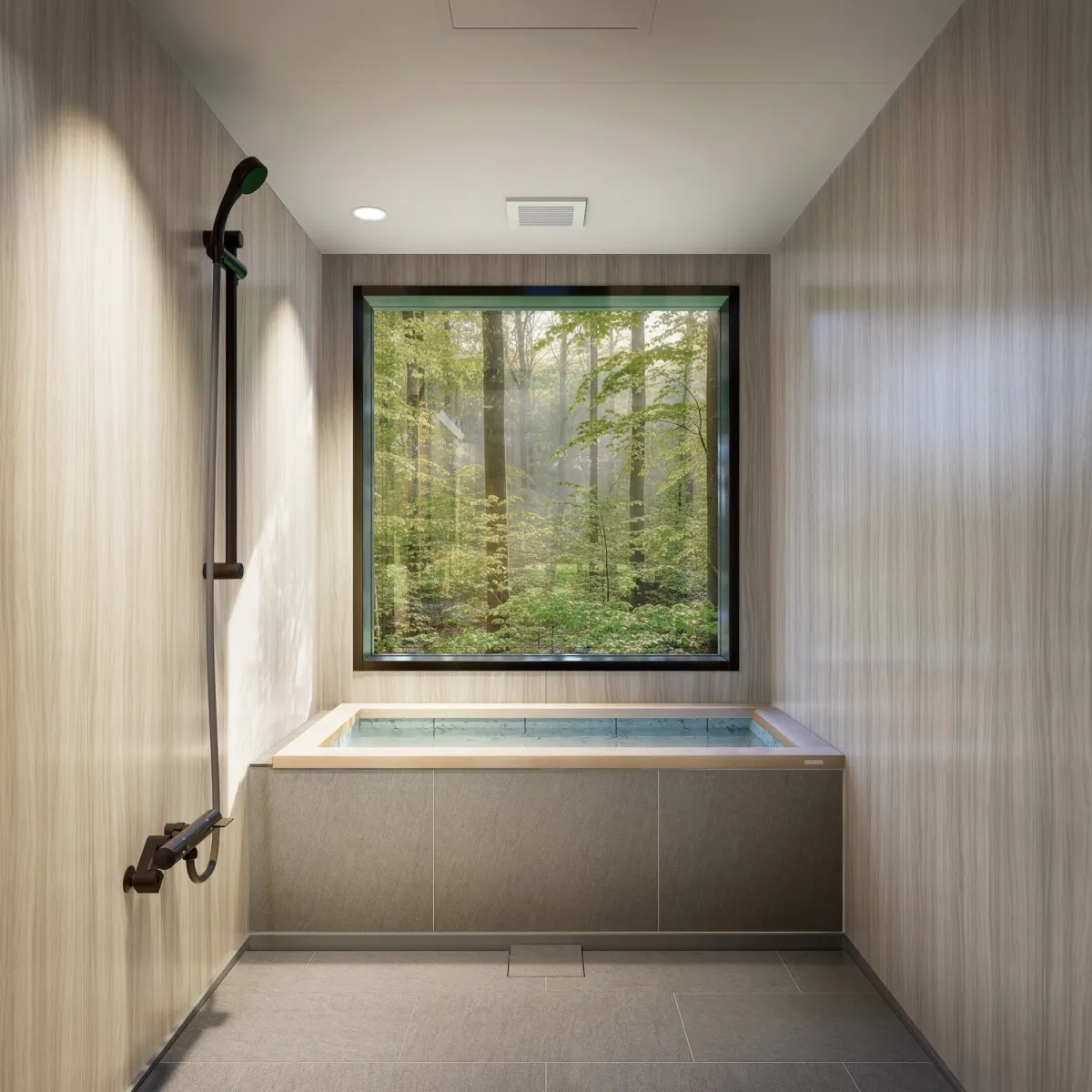木の温もりと石の重厚感が相まって、家庭の浴室でも高級旅館と同じような穏やかな雰囲気を演出。こうしたデザイン思想は、忙しい日常の中でもリラックスしたいというニーズに応えるものであり、まさに現代人のライフスタイルに寄り添った商品だ。