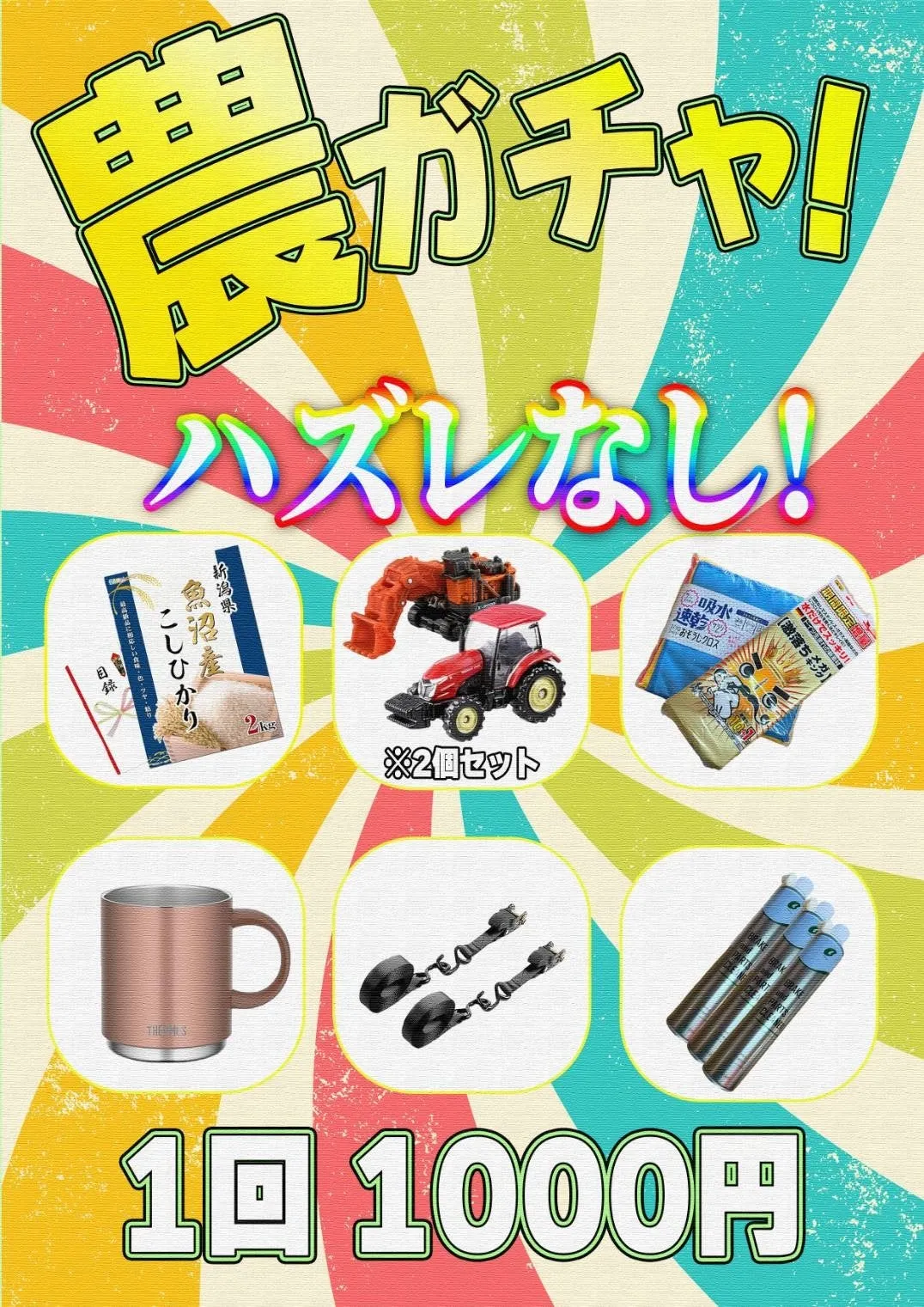 「農機具自販機」は、まるでガチャガチャのような楽しさを取り入れた販売形式です。人々は自動販売機の横に設置されたガチャにお金を入れて回し、その後カプセルの中に入っている「自動販売機の番号」を記載した紙を引きます。番号を見たら、農機具王のスタッフに伝え、対応する自販機の扉を開けてもらう仕組み。何が出てくるかは開けるまでのお楽しみです。