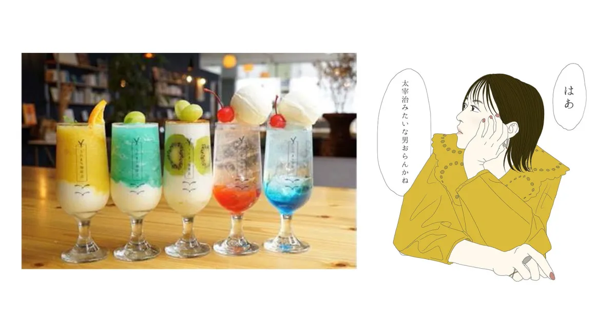 展示されるイラストはすべてSETAが手がけたもので、女子会をイメージしたセリフも添えられています。これにより、訪れた人たちはまるで架空の友達とおしゃべりをしているかのような感覚を味わうことができます。また、メニューにはクリームソーダやパフェなど、SNS映えするフォトジェニックなスイーツが揃っており、インスタグラムなどでの共有にも最適です。