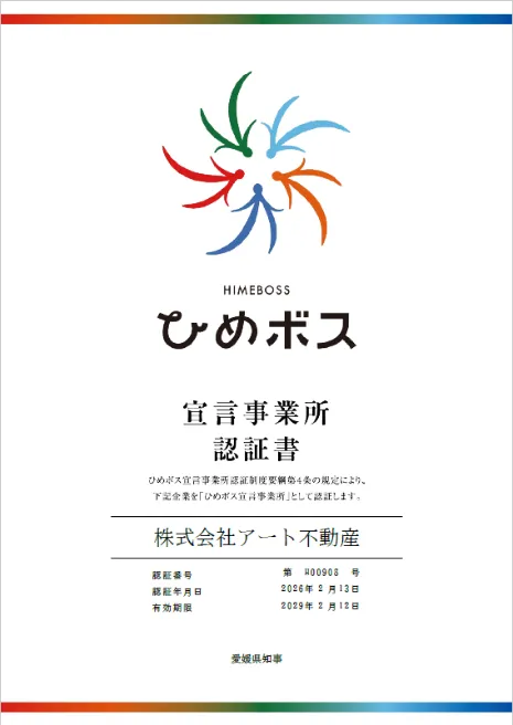 アート不動産は、この認定を一つの重要なステップとして捉え、今後さらに「ひめボス」のスーパープレミアム認証を目指した施策を計画しています。従業員満足度(ES)の向上を図ることで、顧客に対するサービス品質を高めつつ、愛媛の地域社会にも貢献することを目指しています。