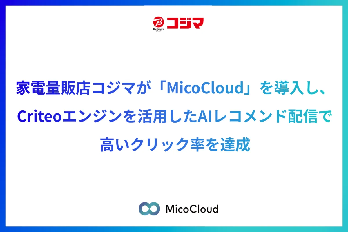 コジマはこのたび、Micoworks株式会社が提供するLINEマーケティングプラットフォーム「MicoCloud」を導入しました。このプラットフォームは、CriteoのAIエンジンと連携し、LINEアカウントを通じたパーソナライズされたレコメンド配信を行うものです。
