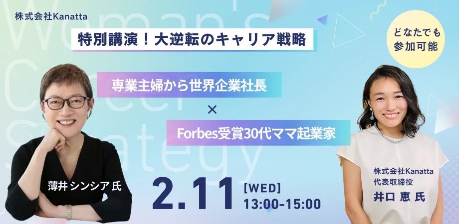 専業主婦として17年を過ごした後、大きなキャリアの転機を迎えた薄井シンシア氏が登壇するトークイベントが2026年2月11日に開催されます。このイベントは、日常の価値観を刷新し、誰もが「いつでも、どこからでも」人生を変えることができるというメッセージを届けることを目的としています。