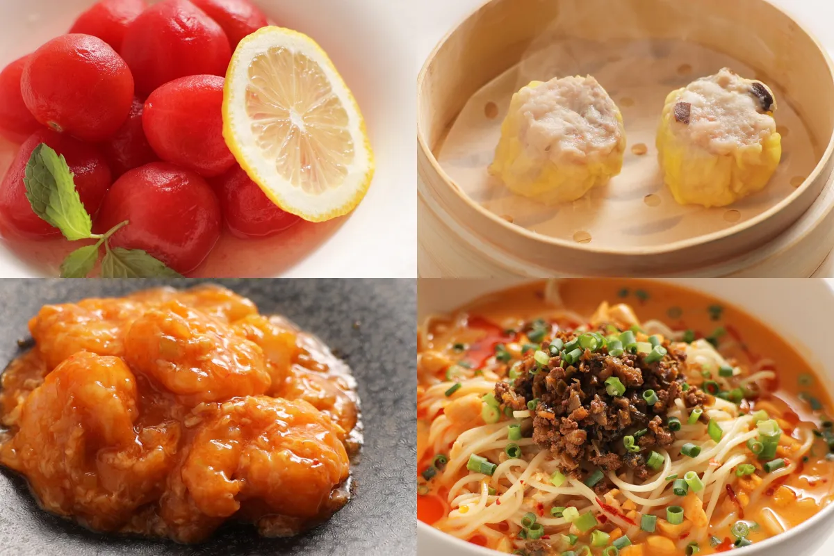 特別コースは前菜、点心、海鮮料理、麺料理から構成されており、ランチとディナーともにお楽しみいただけます。