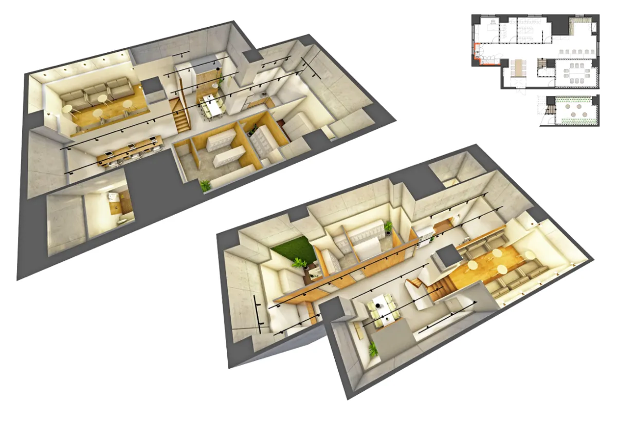 部署を越えた交流の促進:スタッフ同士が自然に話し合えるエリアを設けることによって、部署間の連携不足を解消。