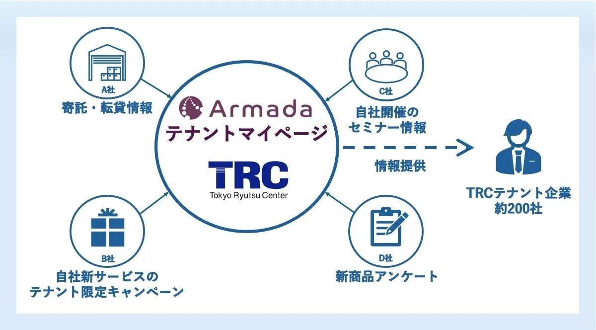 株式会社東京流通センター(TRC)は、テナント企業へのサービスの向上を目的として、クラウドサービス「Armada テナントマイページ」を導入し、テナント企業の情報を掲載する取り組みを開始しました。この新しいサービスは、約200社の企業が入居するTRCの施設内で業務を行うテナント企業にとって、貴重な情報共有のプラットフォームとなります。