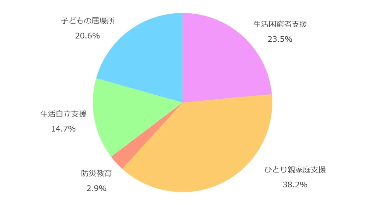 寄付された食品は、以下のような活動を行う団体によって幅広く活用されています。