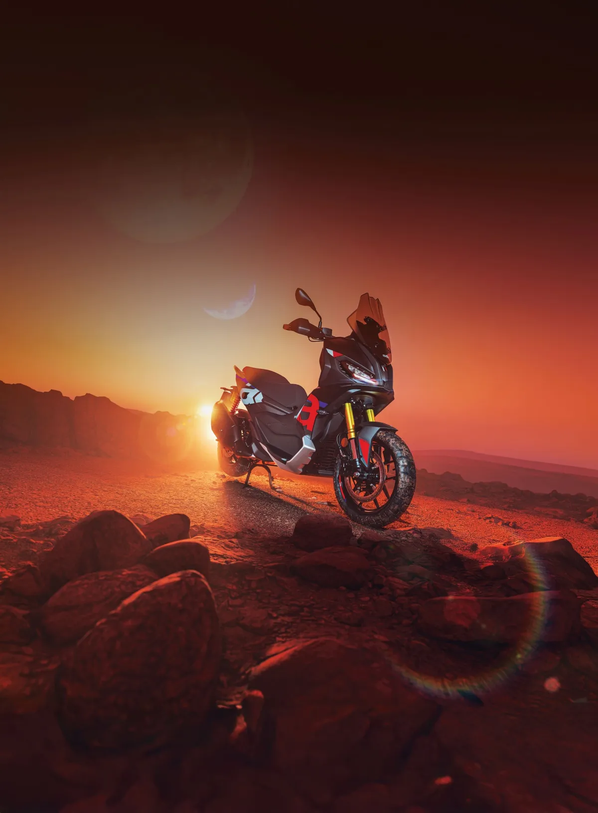 まず紹介するのは、SR GT 400です。このミドルサイズのGTスクーターは、アプリリアのモーターサイクルの伝統を色濃く反映し、あらゆる走行シーンで真価を発揮します。都市部では機敏に動き回り、アドベンチャー的なツーリングでも快適さと力強さを兼ね備えています。特に注目すべきは、新たに設計されたシャシー。これにより、舗装された道路だけでなく、オフロードでも優れたコントロール性を実現しています。