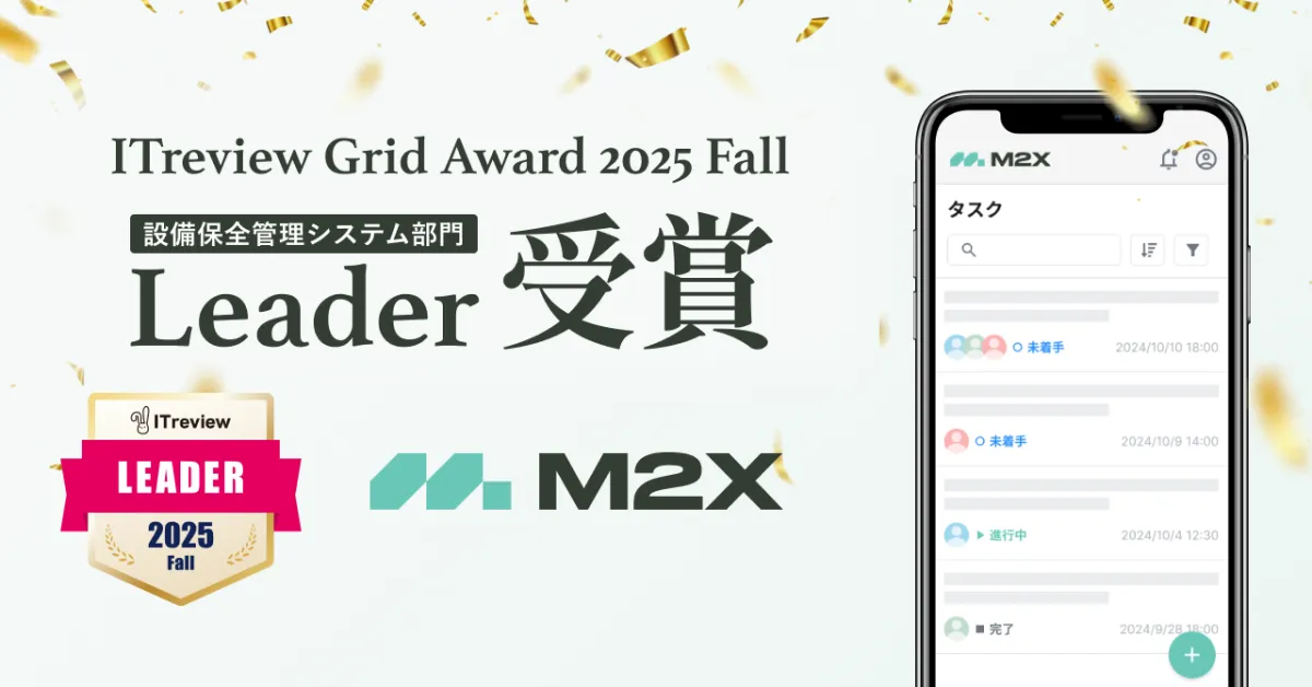 株式会社M2X(東京・中央区)、代表取締役社長の岡部晋太郎氏が手がける設備保全アプリ「M2X」が、最新の「ITreview Grid Award 2025 Fall」で最高位である「Leader」に選ばれました。この受賞は、M2Xが業界での顧客満足度と認知度において優れた成果を挙げた証です。M2Xは、企業の設備保全業務を支援し、業務効率化に寄与することを目的としたクラウドベースのシステムです。