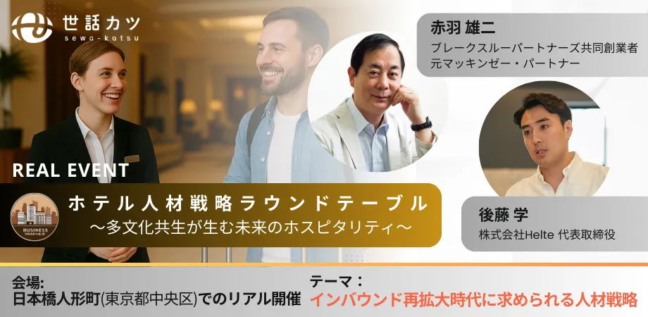 近年、ホテル業界では外国人材の活用が新たな流れとなりつつあります。コロナ禍を経て再び高まるインバウンド需要に伴い、多くの企業が国内の人材不足を感じています。これを受け、株式会社Helteが主催する「ホテル人材戦略ラウンドテーブル」では、赤羽雄二氏をゲストに迎え、外国人材を如何にして効果的に活用するかをテーマにした全4回のオンラインイベントを開催します。