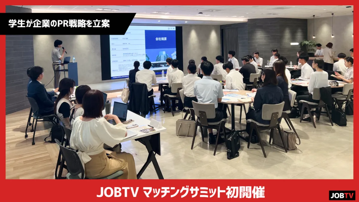 株式会社ベクトルが運営する「JOBTV」は、2027年卒業予定の学生を対象とした新しい形の採用イベント「JOBTV マッチングサミット」を、2025年8月5日に開催しました。従来のような一方的な企業説明ではなく、学生が企業のPR担当者となり、実際のPR戦略を立案・提案する「PR企画ワーク」を中心にしたこのイベントは、企業と学生の相互理解を深める新たな試みです。