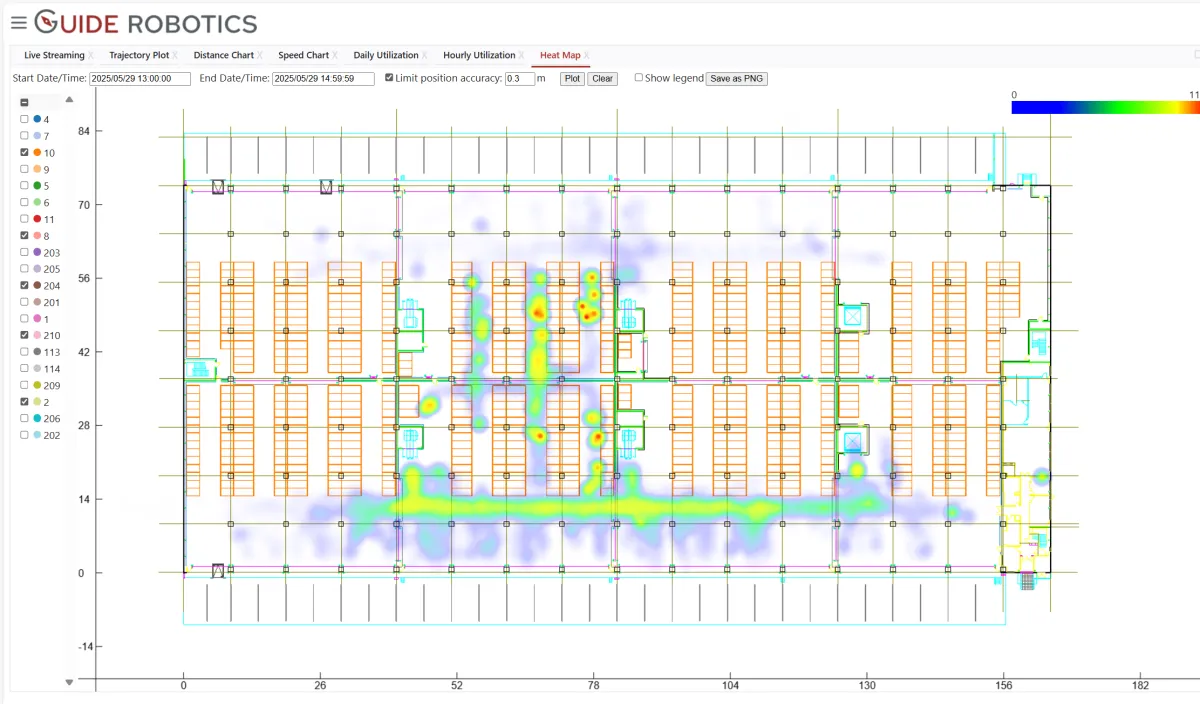 「GuideNS」は、フォークリフトや作業車両の運行状況をリアルタイムで高精度に把握できるシステムです。Visual SLAM(Simultaneous Localization and Mapping)技術に基づき、インフラレスでの位置測位と可視化を実現します。このシステムを用いることで、現場の作業効率や安全性を向上させ、最適なレイアウト設計やルート設計を可能にします。また、現場での改善活動も継続的に行われ、実用的な現場改善に寄与しています。
