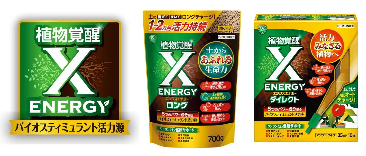家庭園芸の分野で信頼されるKINCHO園芸株式会社が、待望の新商品を発表しました。2026年1月より新たに加わる「X-ENERGYロング 粒タイプ」と「X-ENERGYダイレクト アンプルタイプ」。これらは、植物の健康をサポートする5つのパワー成分を含む、バイオスティミュラントの新ラインです。
